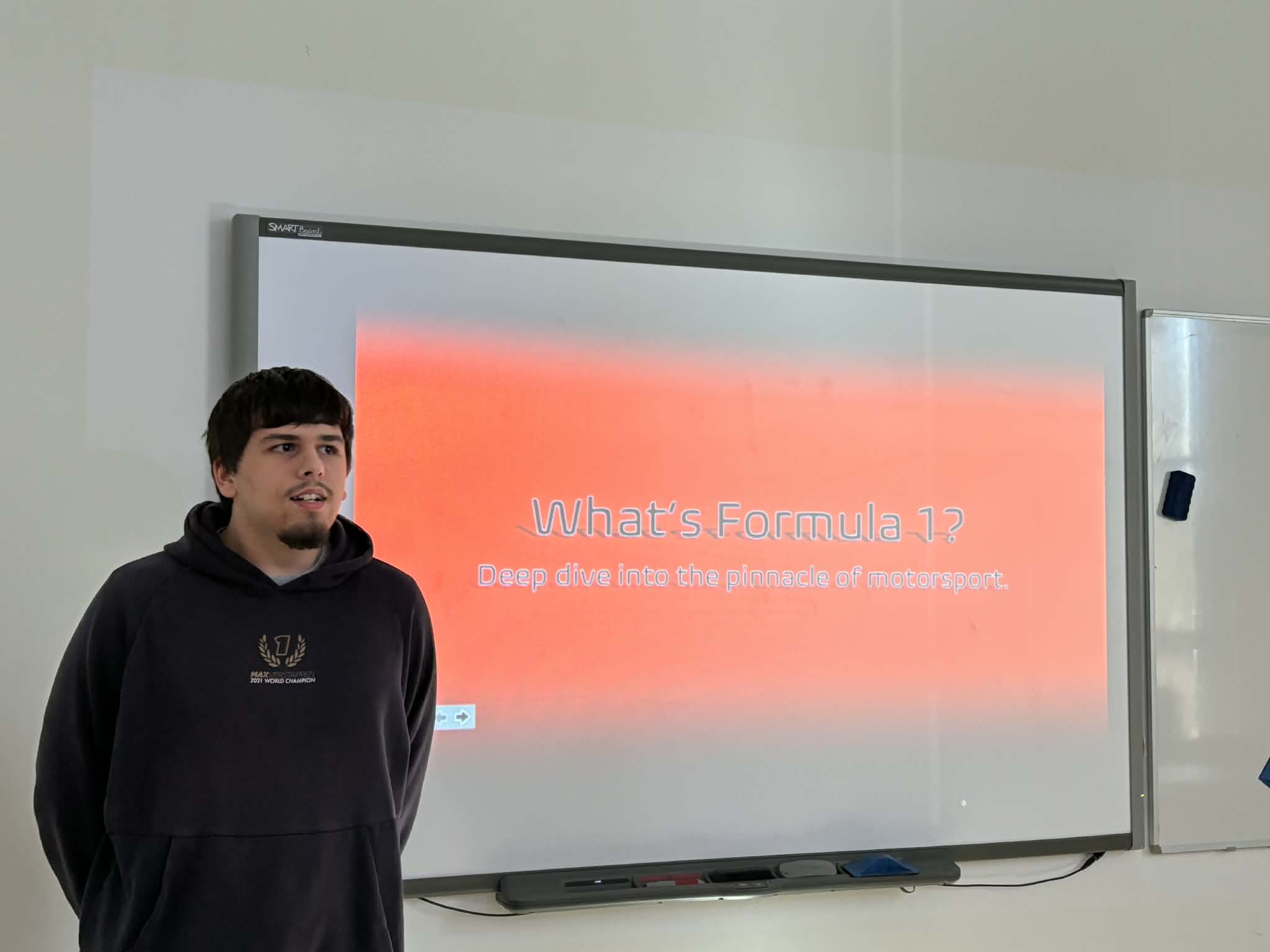 Our first speaker, Máté Hurtony, a student from Bánki School, delivered an enthusiastic presentation on the world of Formula One.