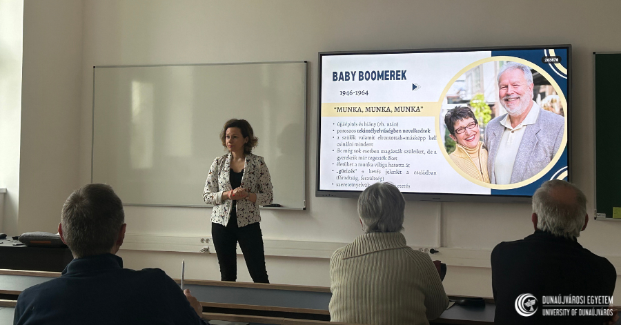 Először Dr. Maczó Edit egyetemi adjunktus előadásában a különböző generációk sajátosságait és jellemzőit mutatta be, amelynek keretében aktív részvételre ösztönözte a hallgatóságot.